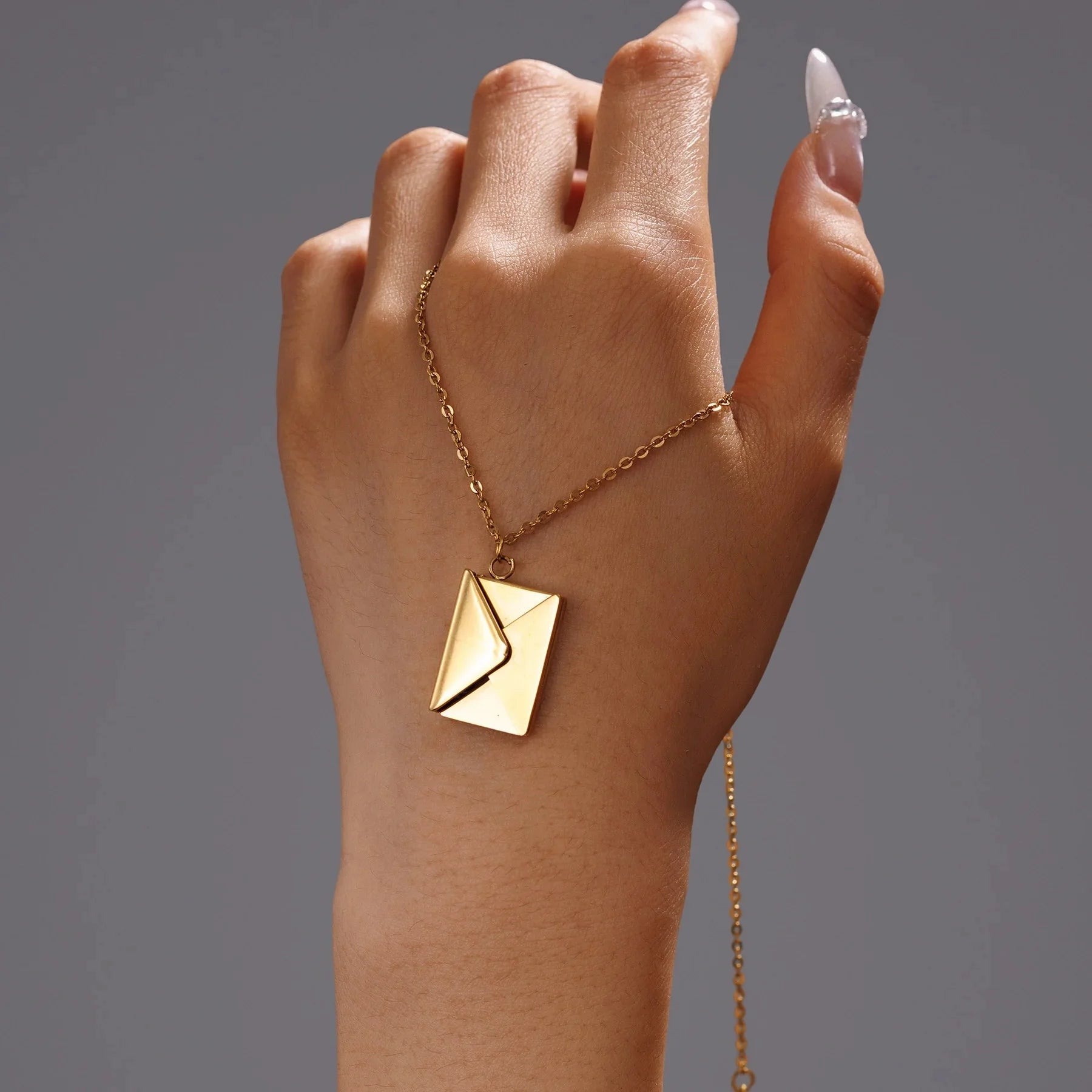 "Lleva tus sentimientos más cerca de su corazón. Este elegante collar con dije de sobre guarda una placa secreta grabada con un 'Love You', convirtiéndolo en el regalo más significativo de este San Valentín."