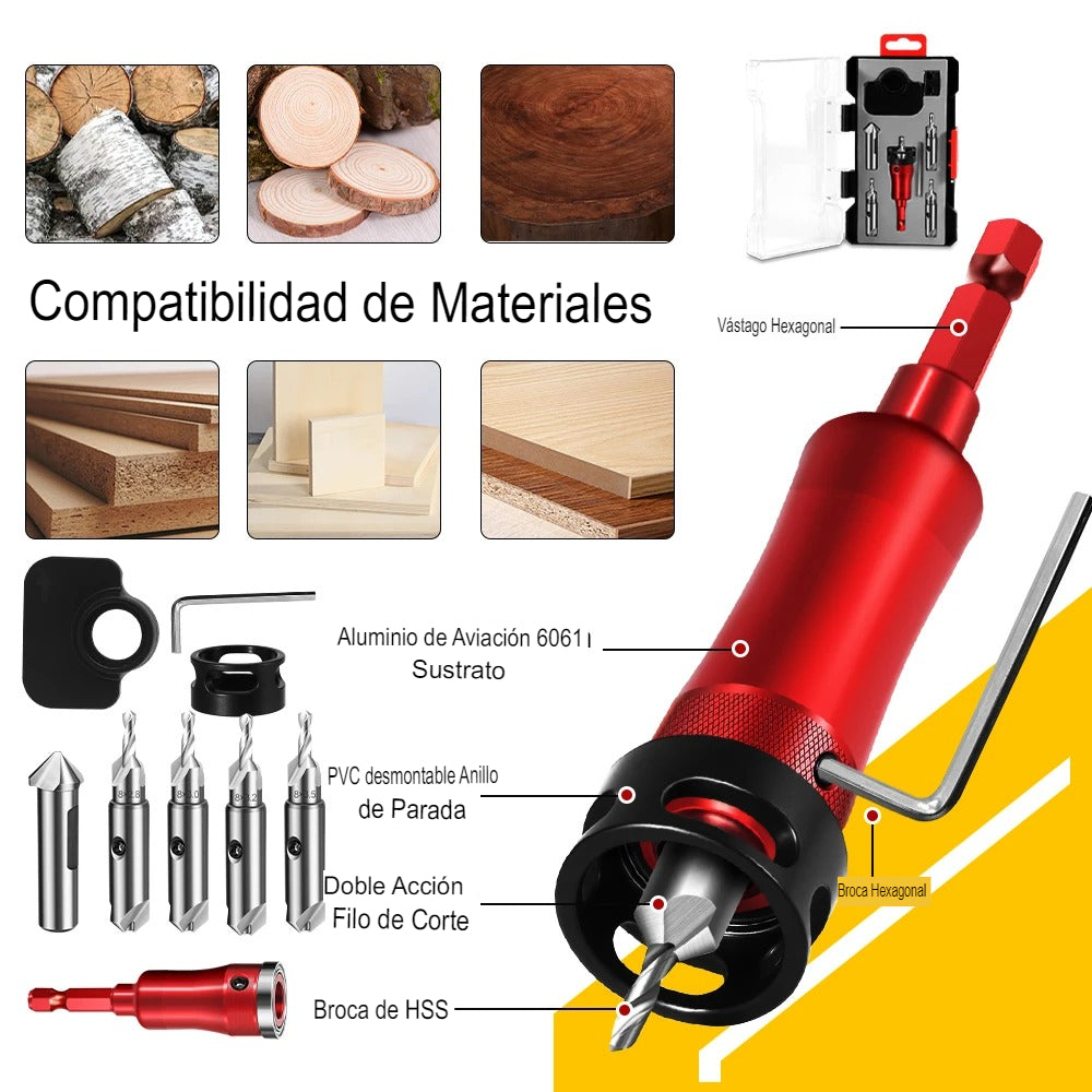 No es solo una Broca Avellanadora... 🔩 también es tu aliado esencial para una carpintería impecable y sin frustraciones. 💪 Transforma tus proyectos de bricolaje en obras de arte dignas de admiración. 🖼️ Nuestro set te proporciona la precisión y facilidad que necesitas para lograr resultados profesionales, eliminando las conjeturas y el trabajo extra. ⏱️